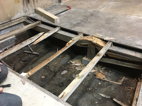 先日、さらに大きな機械を搬入することになりその前日、意を決して傷んだ床を剥がしてみた。